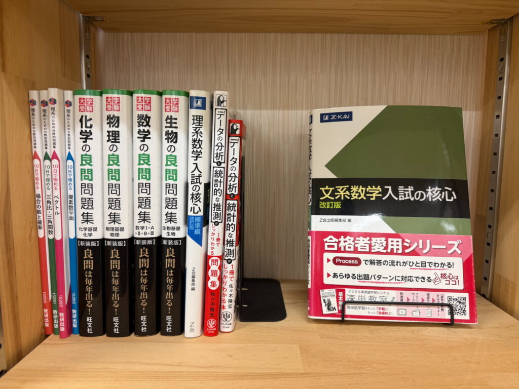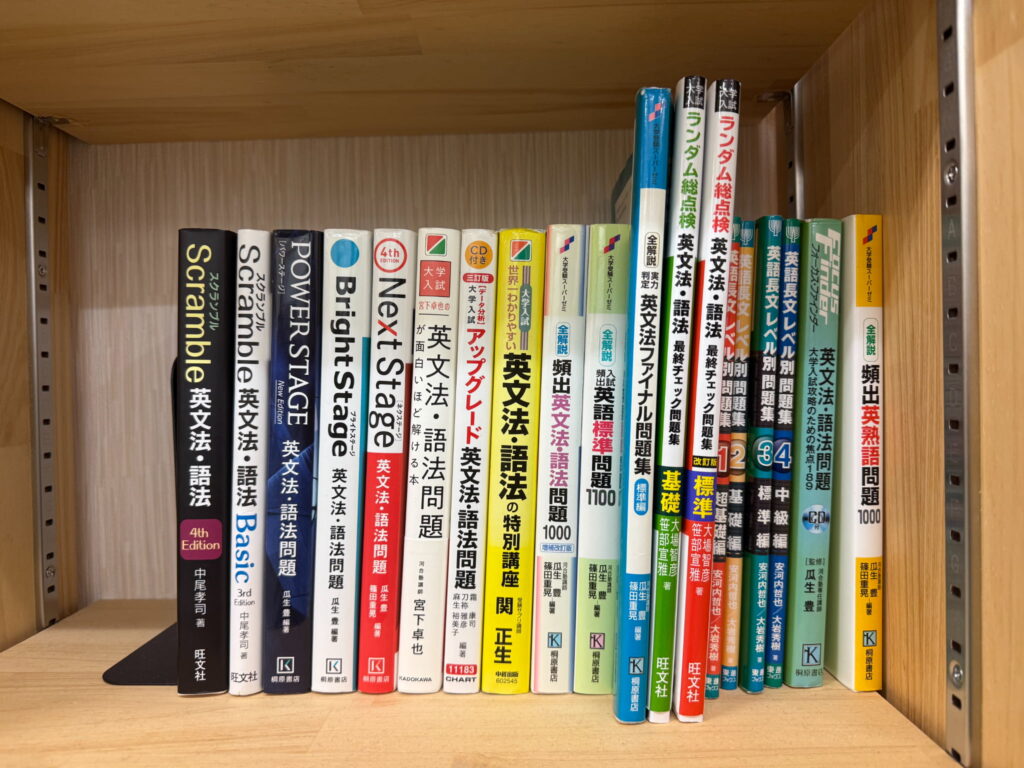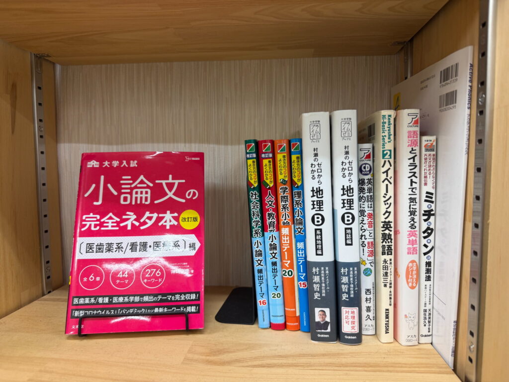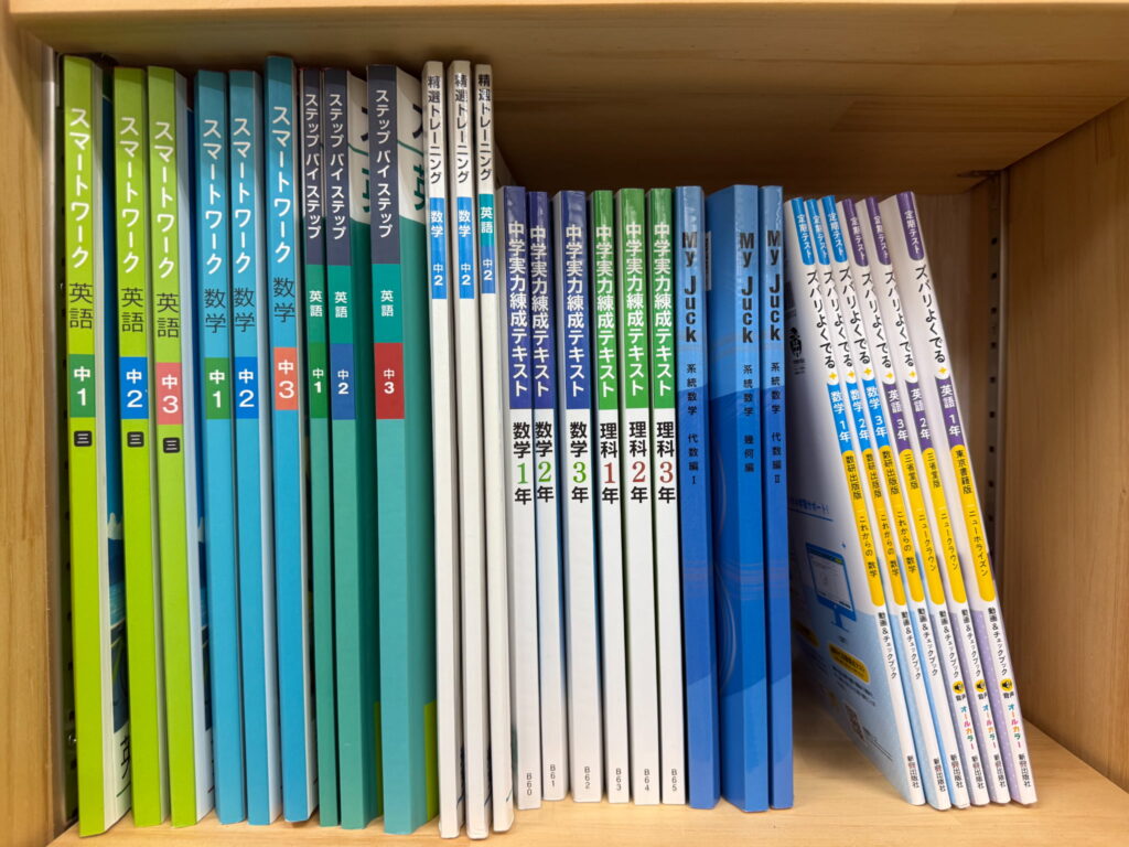 教材棚には市販・塾専用教材を豊富に揃えています。