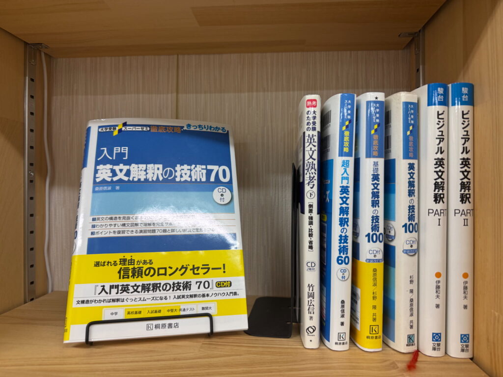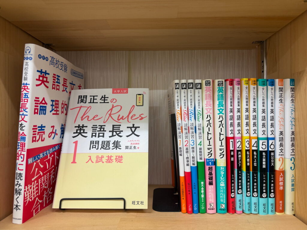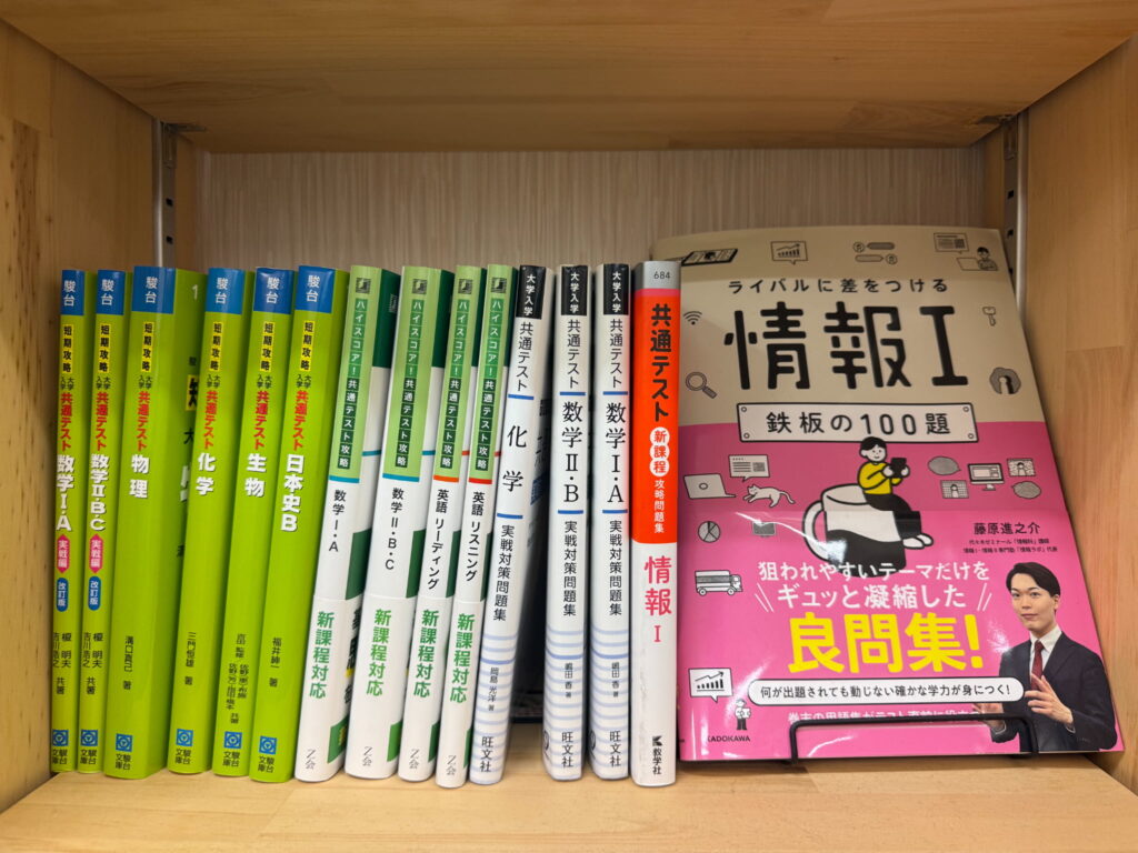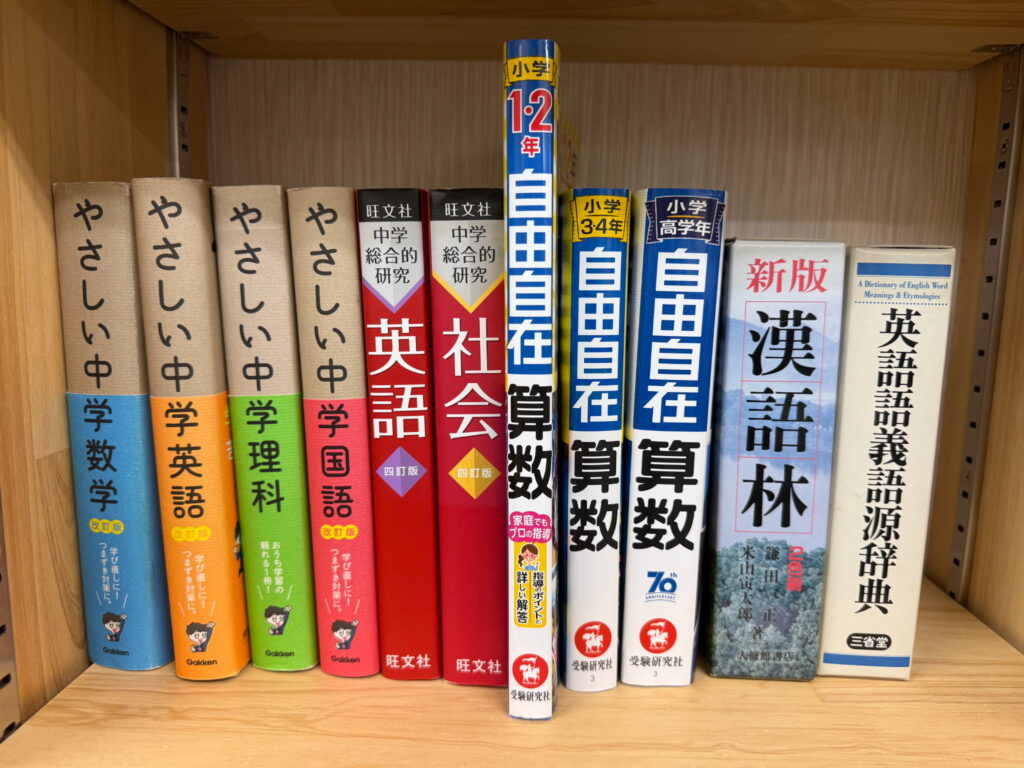 教材棚には市販・塾専用教材を豊富に揃えています。